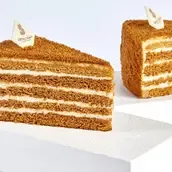 Experience the sweet, warm flavors of home with our Honey Cake, crafted with layers of tender sponge cake infused with the aromatic richness of honey and spices, for a comforting indulgence that will transport you to a cozy autumn day.