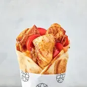 Made with marinated and grilled chicken thigh with akleh sauce, pickled cucumber and colored pepper, all nestled in a fresh bread.