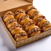 12 meat shawarma bun sandwiches, meat shawarma, tahini, tomato, parsley, onion and mint.