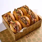 6 meat shawarma bun sandwiches (meat shawarma, tahini, tomato, parsley, onion and mint)