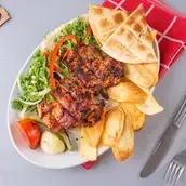 Served with 2 vegetables arayes, French fries, sauteed vegetables and shami bread