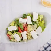 Halloumi cheese, Mixed greens, Cucumber, Tomato, Red onion and olive oil