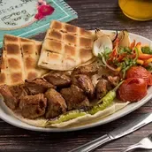 1/4 Kilo veal kebab, served with 2 vegetables arayes, French fries, sauteed vegetables and shami bread