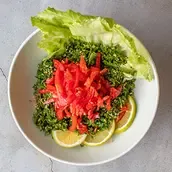 Made with finely chopped parsley, tomatoes, and onions, mixed with mint, and a lemon dressing. A perfect blend of flavors and textures, making it a refreshing and healthy side dish or a satisfying light meal.