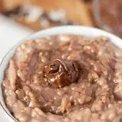 Rice pudding with honey, nutella and nuts