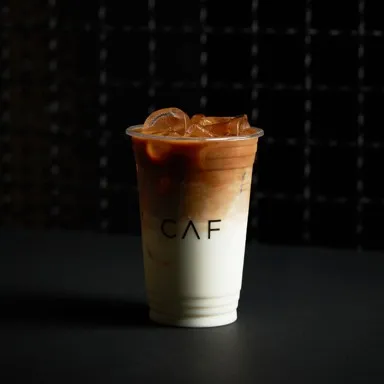 Iced coffee made with espresso and steamed milk