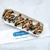 4 small bons filled with chocolate, topped with signature cream cheese frosting, Chocolate syrup, pecans, and without cinnamon