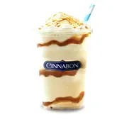 Milk shaken with ice, topped with caramel flavored syrup, whipped cream and caramel sauce