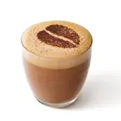 Mix of indulgent chocolatey milk and smooth double shot of coffee served short with sprinkle of chocolate.