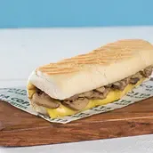 Emmental cheese, mozzarella cheese, cheddar cheese, mayonnaise, onions and mushrooms.