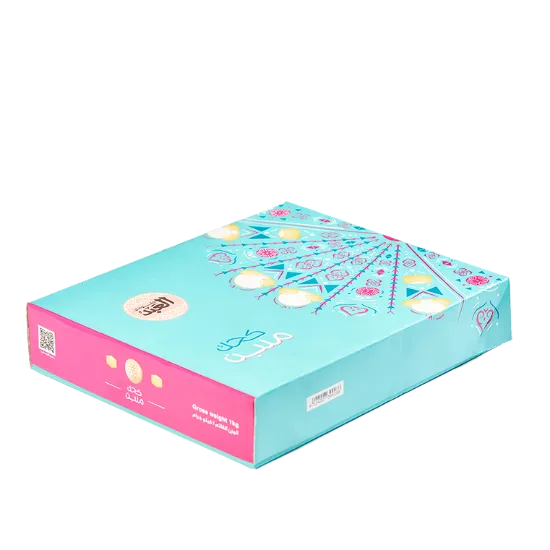 A box of kahk al-Abd stuffed with malban, a true meaning of happiness, made from the finest types of: local ghee, fine flour, malban.