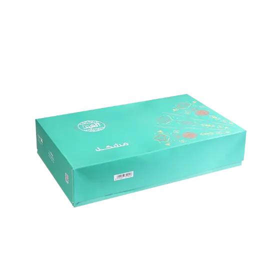 16 pieces of plain kahk - 16 pieces of malban kahk - 16 pieces of walnut kahk - 28 pieces of excellent petit fours - 28 pieces of nuts petit fours - 36 pieces of almond ghariba - 30 pieces of chocolate chip biscuits - 36 pieces of plain biscuits