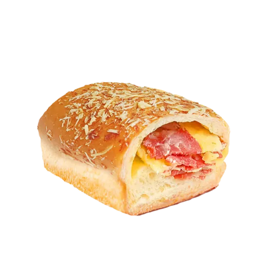 Al-Abd sandwich with pastrami and cheddar cheese. The ingredients of Al-Abd’s delicious dough are milk, flour, sugar, pieces of pastrami and cheddar cheese.
