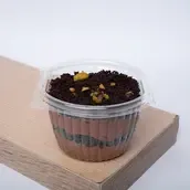 Shredded brownies cake, chocolate cream and chocolate sauce.