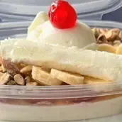 300 Gm, Rice pudding topped with a scoop of vanilla ice cream, fruit pieces, super mix nuts, slice of Qeshta and honey portion.
