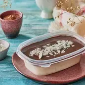 Rice pudding, Nutella chocolate layer and shredded white chocolate.