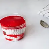 Sponge cake, heavy cream, strawberry jelly and strawberry sauce.