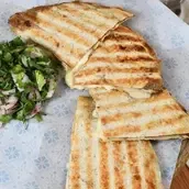 Lebanese bread Stuffed with minced meat and mozzarella cheese in the Lebanese way, grilled on charcoal and served with sesame paste with bewas.