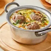 Kebbeh tablets stuffed with meat and pine nuts with cooked yogurt and mint served with white rice