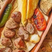 Number of 2 veal kebab skewers on the Lebanese way, served with grilled vegetables or fries or white rice
