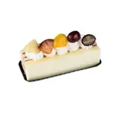 Vanilla cake, white cream, white chocolate and fruits.