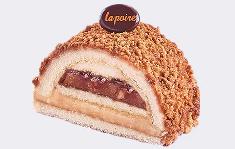 VANILLA SWISSROLL WITH CREAM, CARAMELIZED HAZELNUTS, LOTUS CREAM, LOTUS BISCUIT AND STRAWBERRY JAM
