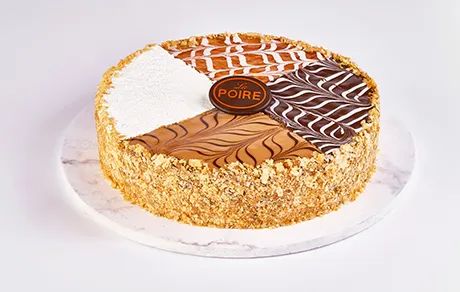 LA POIRE'S FOUR FAMOUS MILLEFEUILLE COMBINED IN ONE TORTE: 1/4 JAM / 1/4 CHOCOLATE / 1/4 SUGAR / 1/4 CARAMEL