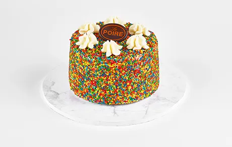 LAYERS OF COLORFUL SPONGE CAKE STUFFED WITH LA POIRE'S DELICIOUS CREAM