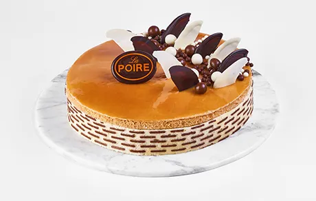 LAYERS OF WHITE SPONGE CAKE STUFFED WITH CARAMEL MOUSSE & CARAMELIZED WALNUTS, TOPPED WITH CARAMEL GLAZE