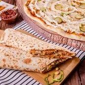 Chicken, mushrooms, green peppers, corn, pickles, cheese, garlic dip sauce and hot sauce