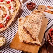 Oriental sausage, tomatoes, cheese, pickles and mayonnaise.