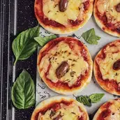 8 pieces, tomato sauce, mozzarella cheese, and olive