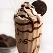 A mixture of chocolate, oreo biscuits, milk, ice and cream
