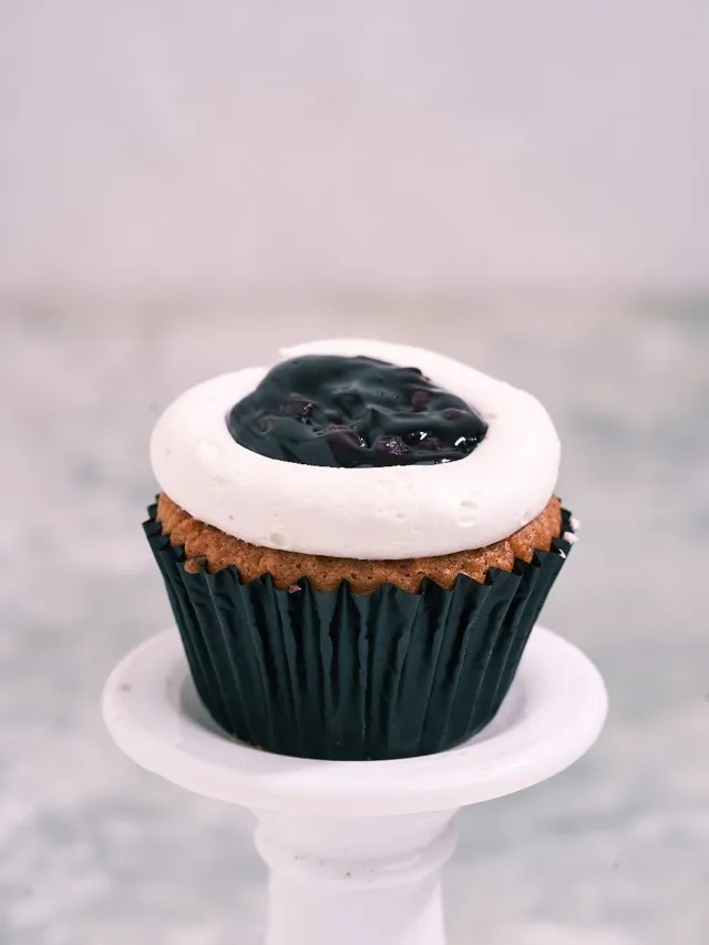 Vanilla cake with pieces of Blueberry - Icing Vanilla Yeast Cream - topping Blueberry.