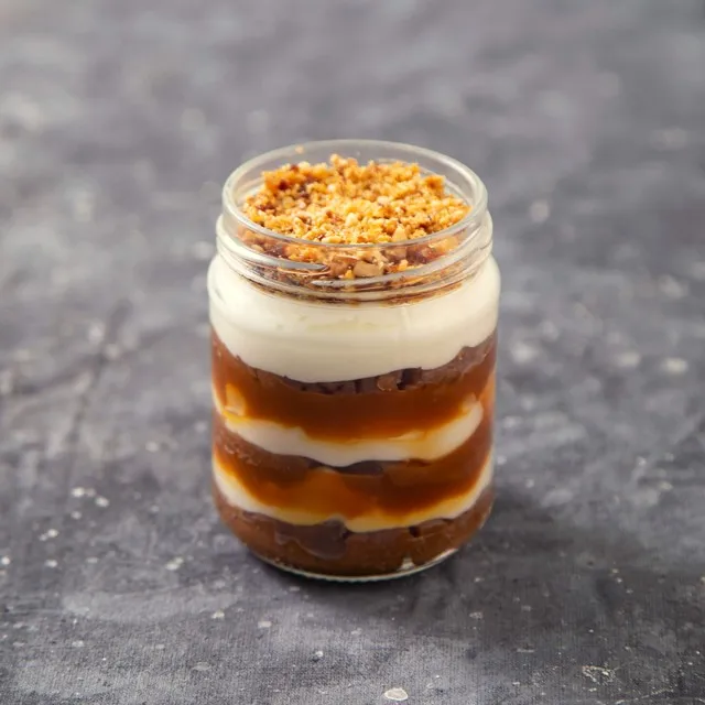 "Caramel Cake - White Chocolate Cream - Caramelized almonds sauce For 1 Person"