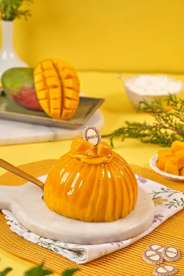 Vanilla sponge cake with fresh cream, mango pieces and mango sauce - enough for two persons