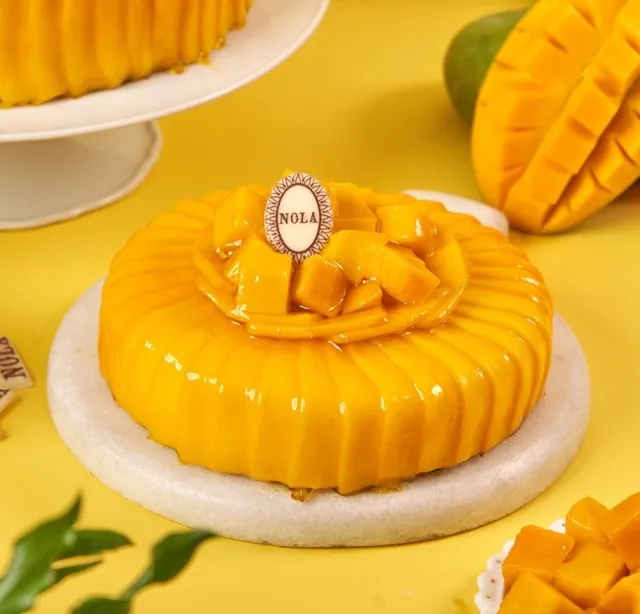 Vanilla sponge cake with fresh cream and mango pieces - enough for 3 persons