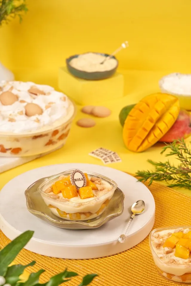 Mango with pudding and biscuit pieces - enough for one person