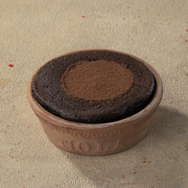 "Fudge Chocolate Cake and in the middle Chocolate and on it cream Cheese and Cocoa (heated in microwave for 30 seconds) Serve: from 1 Persons"