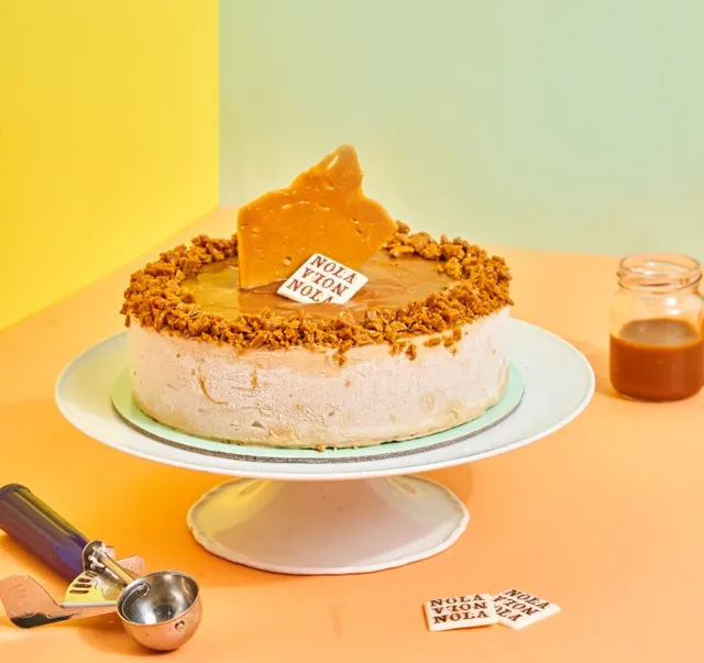 Vanilla sponge layer with salted caramel ice cream, caramel and caramel toffee - enough for 8 people
