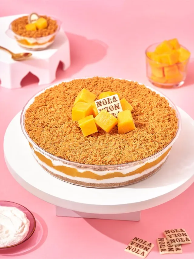 Kunafa with fresh cream and mango pieces serve: From 6 to 8 person