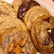 1 Cookie from each: Milk chocolate, Kinder, Big Belgian, Double Trouble, Dark Espresso, Cinnamon Pecan, Lotus and Nutella cookies.