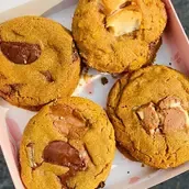 1 cookie from each milk chocolate, kinder, big belgian, dark espresso, cinnamon pecan, louts cookies.