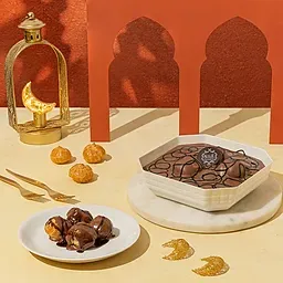 Choux filled with cream covered with chocolate sauce & caramelized hazelnuts