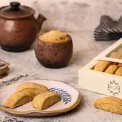Box containing approximately 23 pieces of baked Mnean