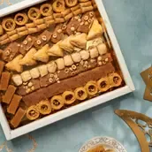 Konafa nuts, basbousa hazelnut, plain basbousa, burma pistachio, eat and thank, hazelnut bracelets, roses, almond fingers