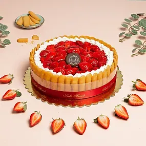 Sponge cake filled with fresh cream and strawberries and topped with fresh strawberries