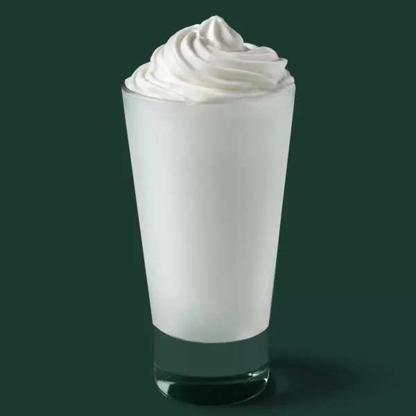 Vanilla flavoured syrup combined with milk, blended with ice and topped with whipped cream.