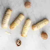 Filo pastry, walnut mix and sugar syrup