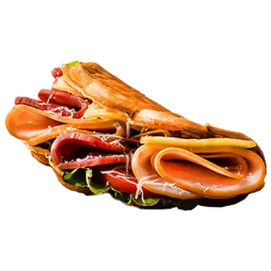 Waffle Dough, Cream Cheese, Smoked Beef, Smoked Turkey, Cheddar Cheese, Parmesan Cheese, Lettuce, Tomatoes & Special Mayonnaise